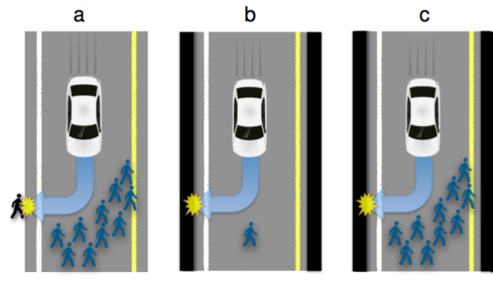 With the introduction and growth of Driverless Cars (or Autonomous Vehicles “AVs“) a pressing ethical question has arisen over how to program these cars in situations that will clearly result in an unavoidable collision. Faced with the choice of saving the “driver” (or the occupants of the vehicle) by plowing into a group of pedestrians, or sacrificing the occupants for the greater good, should the AV be programmed to save as many lives as possible?