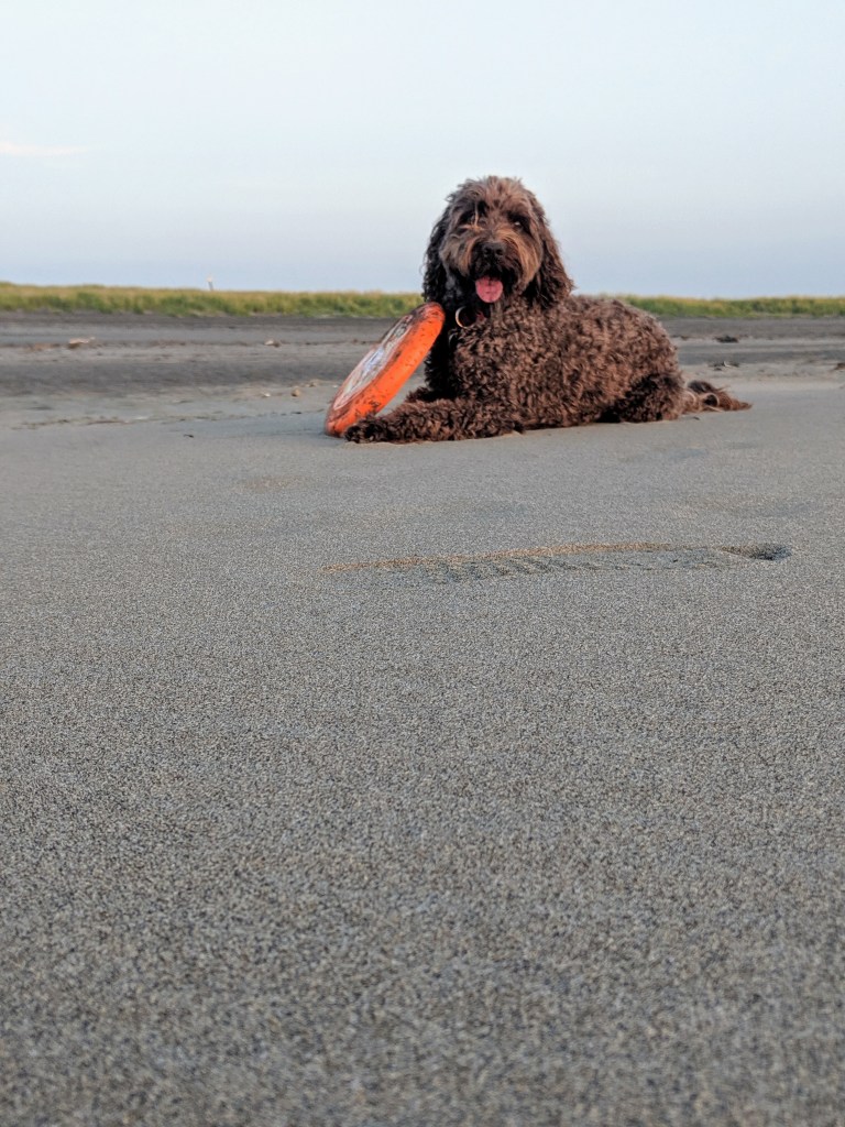 When the dog showed up to see what we were doing he immediately interrupted the flow of the game. Ball obsessed, especially when it is a ball we are using for something that doesn’t involve him, Tallinn constantly chased down the ball always trying to capture it just before it rolled into the Dish or hit the stick. When that happened we added a Mulligan rule and called it a Tallinn. If any dog or non-player interrupts a throw before the ball comes to rest it is deemed a Tallinn and the thrower gets their toss again. Not always an advantage but clearly consistent with the Again nature of the game.